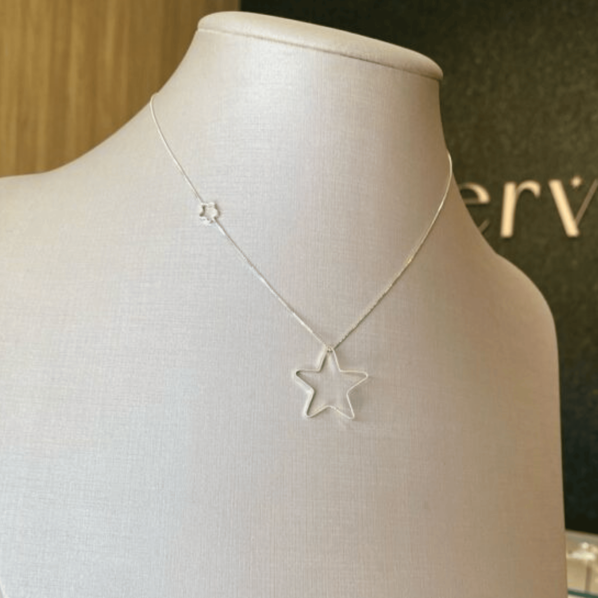 CL 38 CM COM PINGENTE ESTRELA G 2CM E ESTRELHA PP EMBUTIDO NO COLAR
